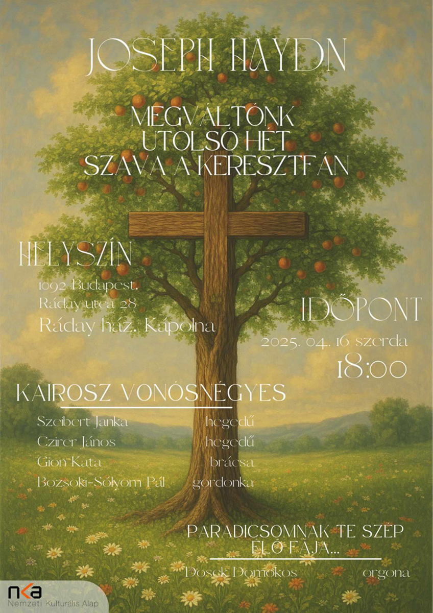 Időpont: 2025. április 16. 18.00 óra, helyszín: Ráday Ház Kápolna